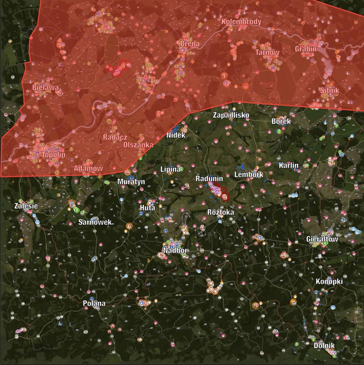 Червоним кольором позначена зона повної заборони будівництва.